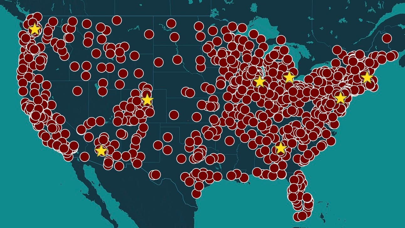 Here’s what the Hands Off protest map looks like for the 4/5 event: