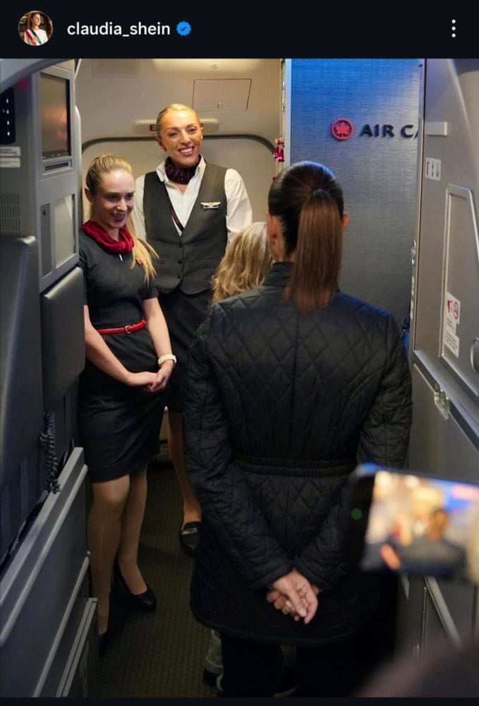 This is Mexican President Claudia Sheinbaum boarding a flight in Mexico City for her trip to the G7 summit in Canada. I bet it made those flight attendants’ day.