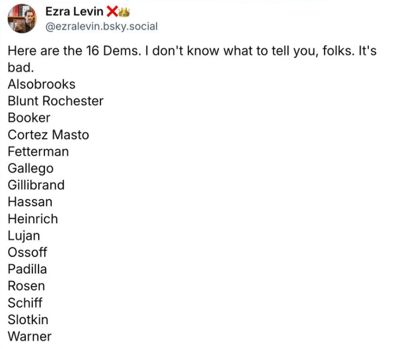 Eighteen Democratic senators crossed the aisle to vote for the legislation on Tuesday, siding with the Republican majority in the 53-47 Senate. Republican Sens. Josh Hawley and Rand Paul were the only members of their party to oppose the measure.