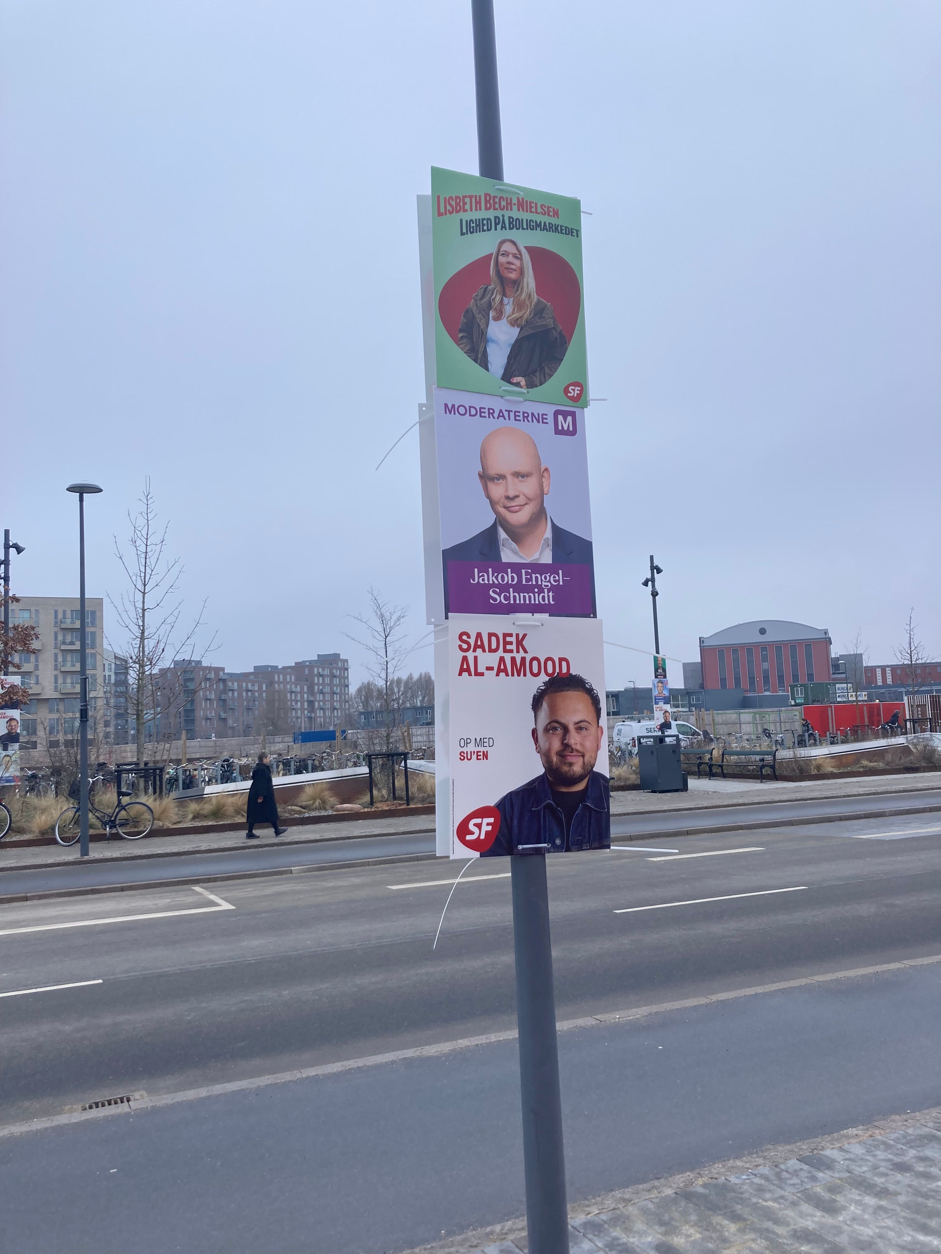 There are 13 larger political parties in Denmark (along with many more smaller ones) and Denmark strictly regulates campaigns, so these are the political ads: