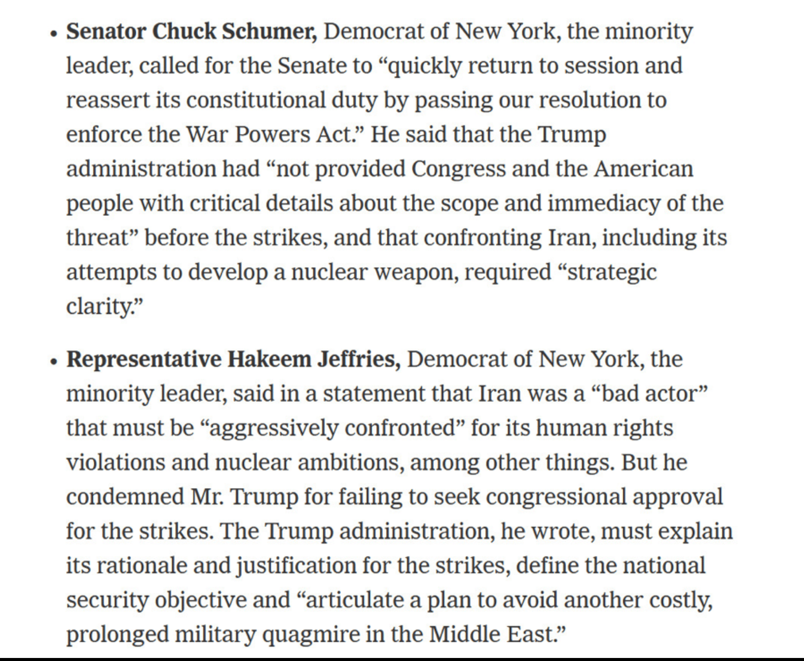 What do these guys want to do? Does Schumer want to pass a resolution to stop the war? Or just one that has “clarity”? I honestly don’t understand their position. The first rule of fighting is that you need to fight for something, and I don’t even understand the thing they’re fighting for.