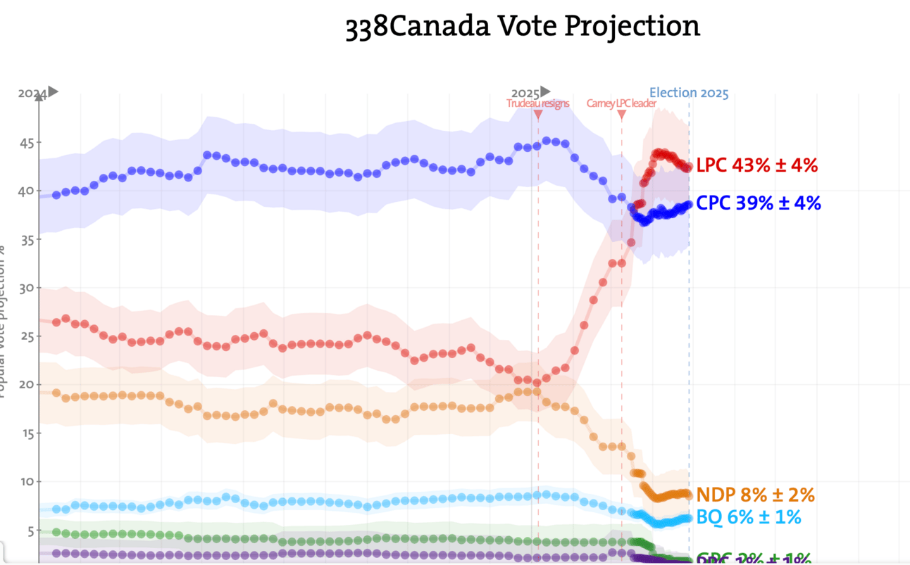 AM Update: The CBC called Poilievre’s riding for his Liberal opponent, Bruce Fanjoy. The Liberals are within striking distance of a majority but counting still continues. I stayed up late to watch Carney’s victory speech and he repeated his rhetoric about the special relationship between Canada and the US being over. Sad to see some