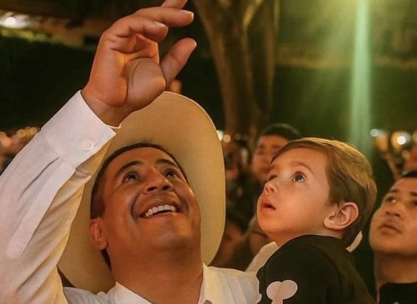 Carlos Manzo with his son shortly before being shot in Urupan