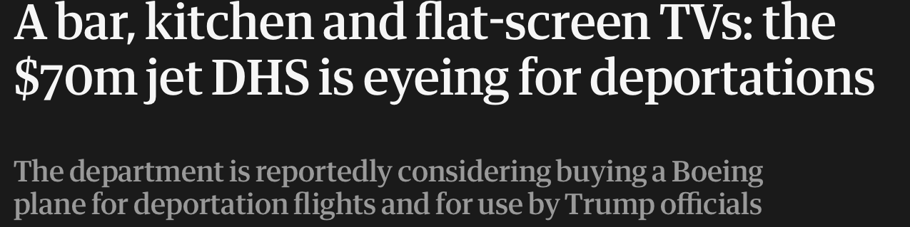 The issue here is blindly repeating the DHS claim that the jet they’re buying is ever going to be used for deportations.