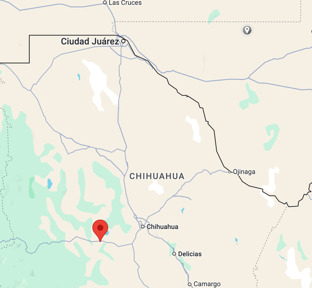 Ciudad Cuauhtemoc is the pin. El Paso is across the river from Ciudad Juarez.