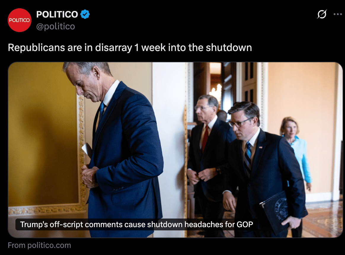 The Politico story is slugged “Republicans in Disarray” and a Google search retains the original headline but they changed it. Baby steps.
